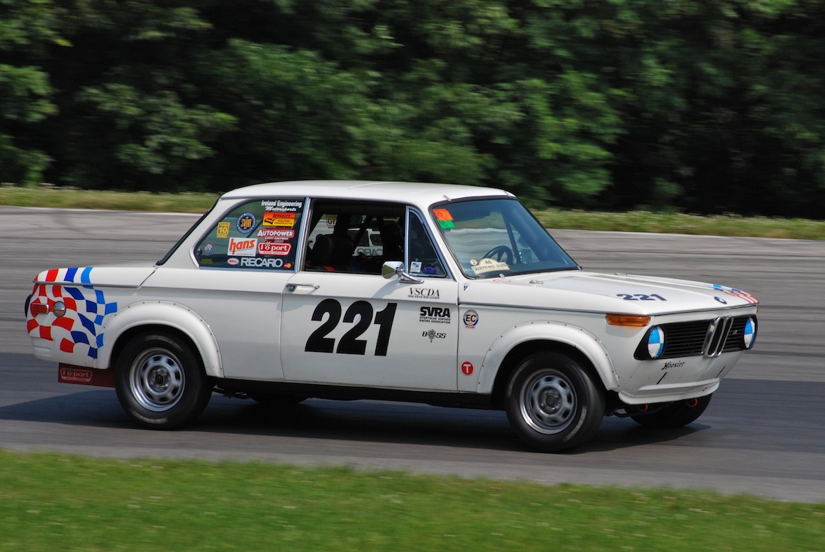 Turn 4, at the end of the long back straight, leading into a series of corners known as "Madness". Here's a smart-looking 1972 BMW 2002ti maintaining good momentum as he exits Turn 4.