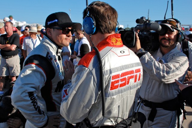 Driver Joey Hand of the #56 Rahal/Letterman/Lanigan BMW GT car, appearing relaxed prior to the start. He and his co-drivers Dirk Mueller and Jonathan Summerton finished first in the GT class.
