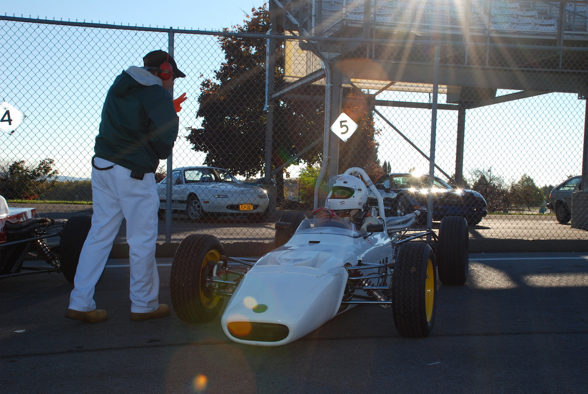 Andrew Stein (#195 – 1970 Merlyn Mk. 11/17) on the grid early Sunday morning.