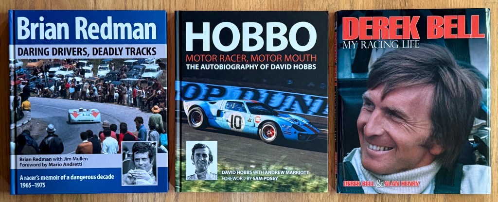 For the month of August, I’ve featured books written by three of my all-time favorite British drivers, Brian Redman, David Hobbs, and Derek Bell. Each one enjoyed success in a variety of racing series, from open wheel formulas to endurance sports cars. They’re also known for their unique style of storytelling, which paints an intriguing and entertaining picture of life in the world of auto racing in the 1960’s, 70’s, and 80’s.