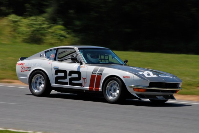 The afternoon agenda began with the BMW/Alfa/Datsun Challenge Race, won by Jim Lenehan (Rydal, PA) driving his beautiful white with red and blue stripes (#240) 1971 Datsun 240Z. Afterwards Lenehan commented that it was a real fun race, and was very competitive. He added that there was a good turn-out of competitors and that all of the groups were competitive. He stated that the event and setting offered lots of nostalgia on this vintage grand prix weekend. Coming in a close second was Joe Maloy (Bridgeville, PA), in his (#39) 1968 Datsun PL510. Taking third step on the podium was Curt Richards (Lexington, KY) in his (#24) 1991 BMW 318.